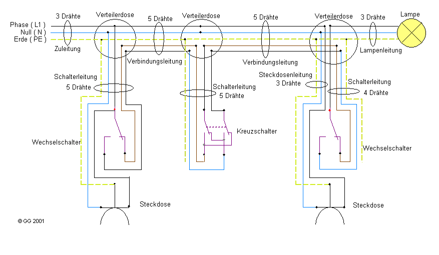 Kreuzschaltung Zusammenhängender Darstellung : Wechselschaltung Zusammenhangende Darstellung - Wiring Diagram _ Kreuzschaltung zusammenhängender darstellung | die kreuzschaltung ist eine einfache und preiswerte lösung, um einen großen raum mit mehreren türen mit licht zu versorgen.